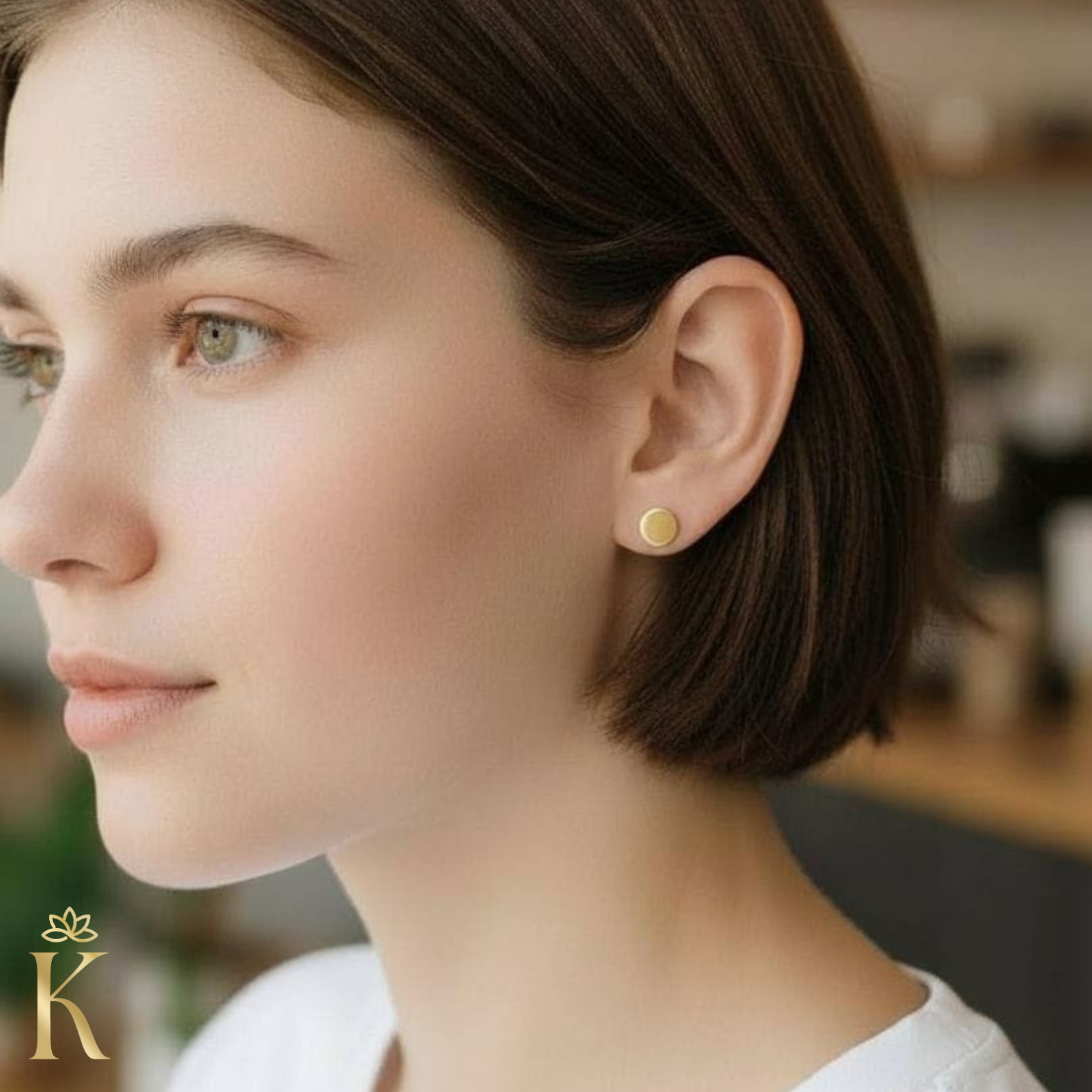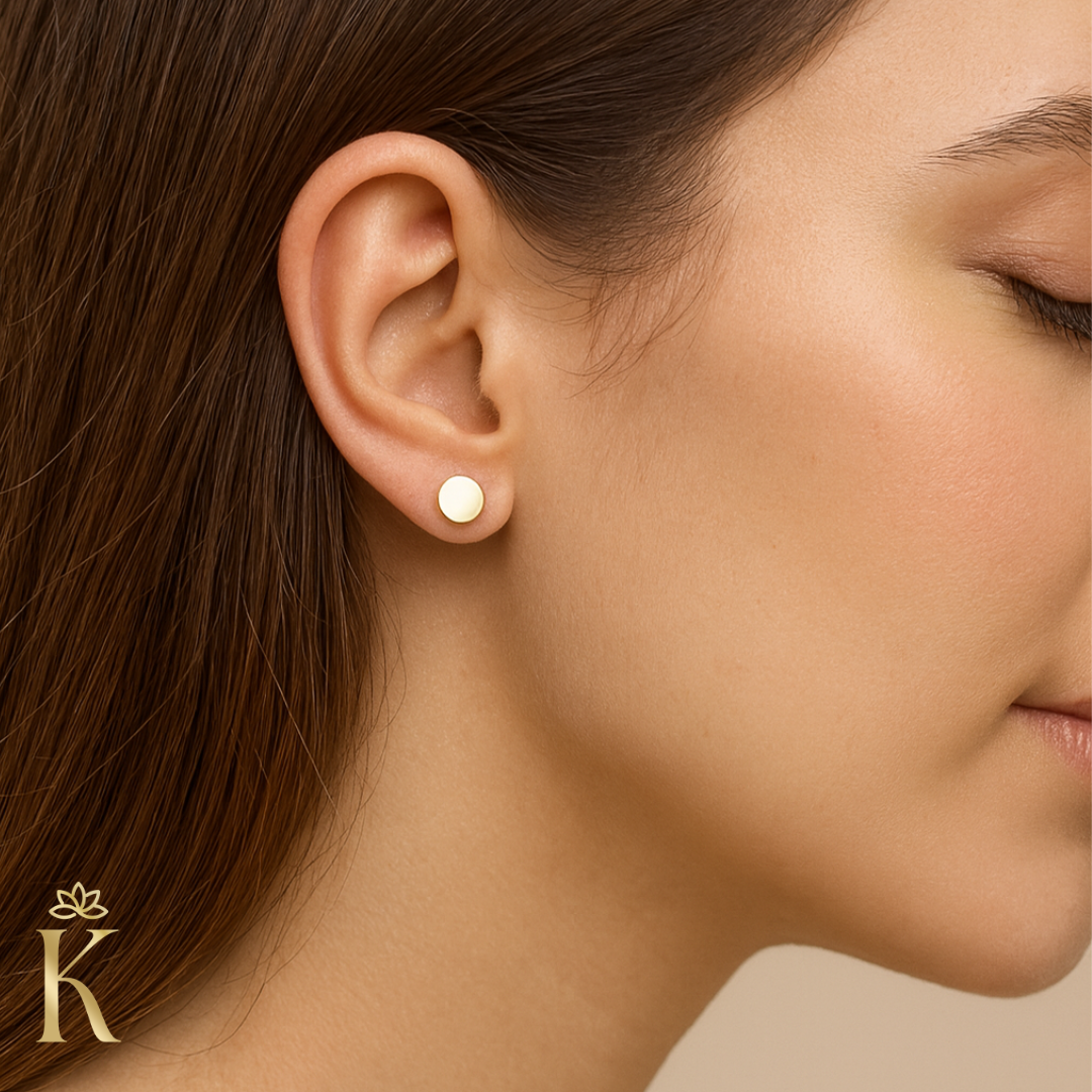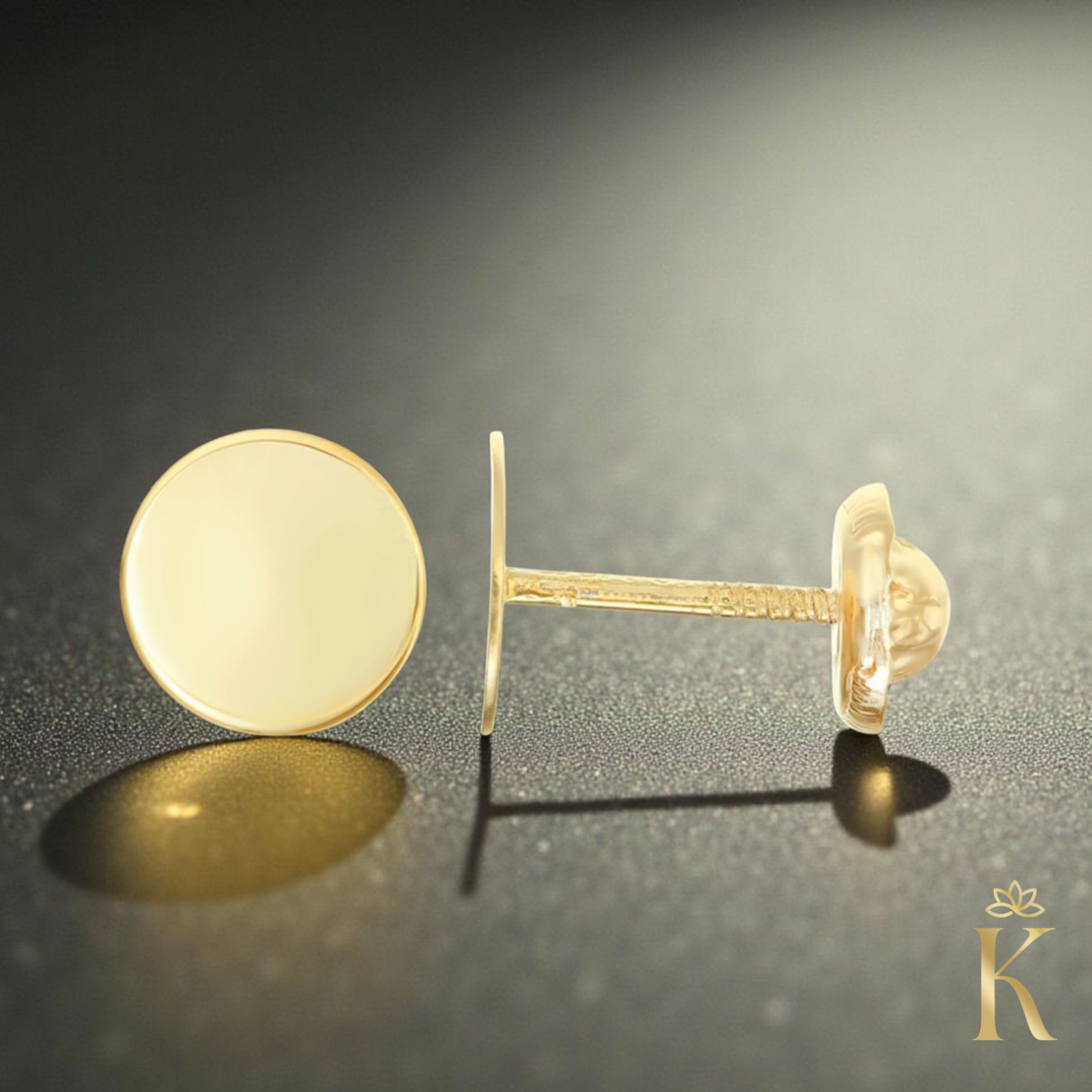 Cercei cu protectie, din aur galben de 9K, Banuti plati de 8 mm, model potrivit atat pentru fetite cat si pentru doamne!