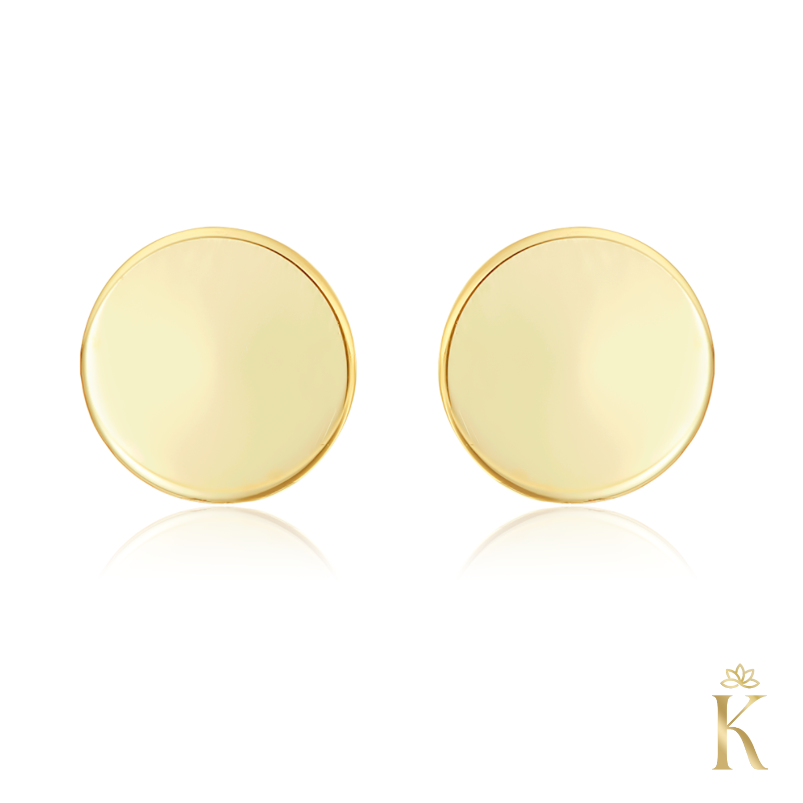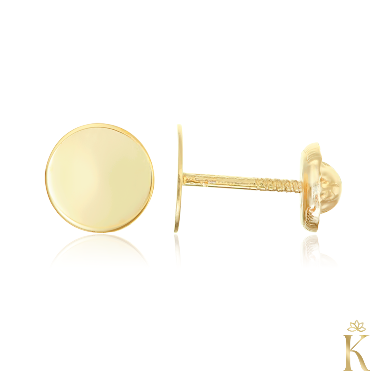 Cercei cu protectie, din aur galben de 9K, Banuti plati de 8 mm, model potrivit atat pentru fetite cat si pentru doamne!